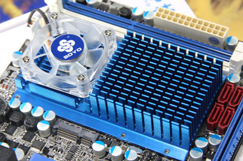梅捷SY-E350-U3M作為超低功耗平臺,主板采用了主動式散熱設計,提供不錯的散熱效能。主板僅采用2相供電設計,封閉式鐵素體電感配合MOS管足夠供應給此款低功耗主板穩(wěn)定的電流。主板帶有2條DDR3內存插槽,支持DDR3雙通道規(guī)格。