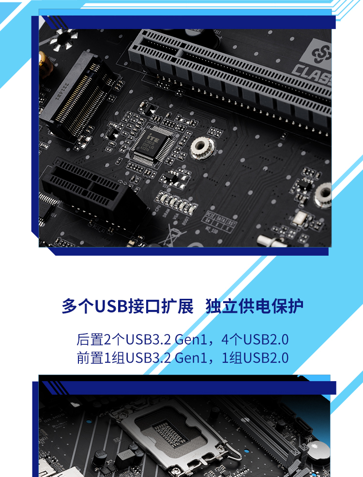 - IO處2個USB3.2 Gen1接口,4個USB2.0接口;前面板USB3.2 Gen1接口1組,前面板USB2.0接口2組